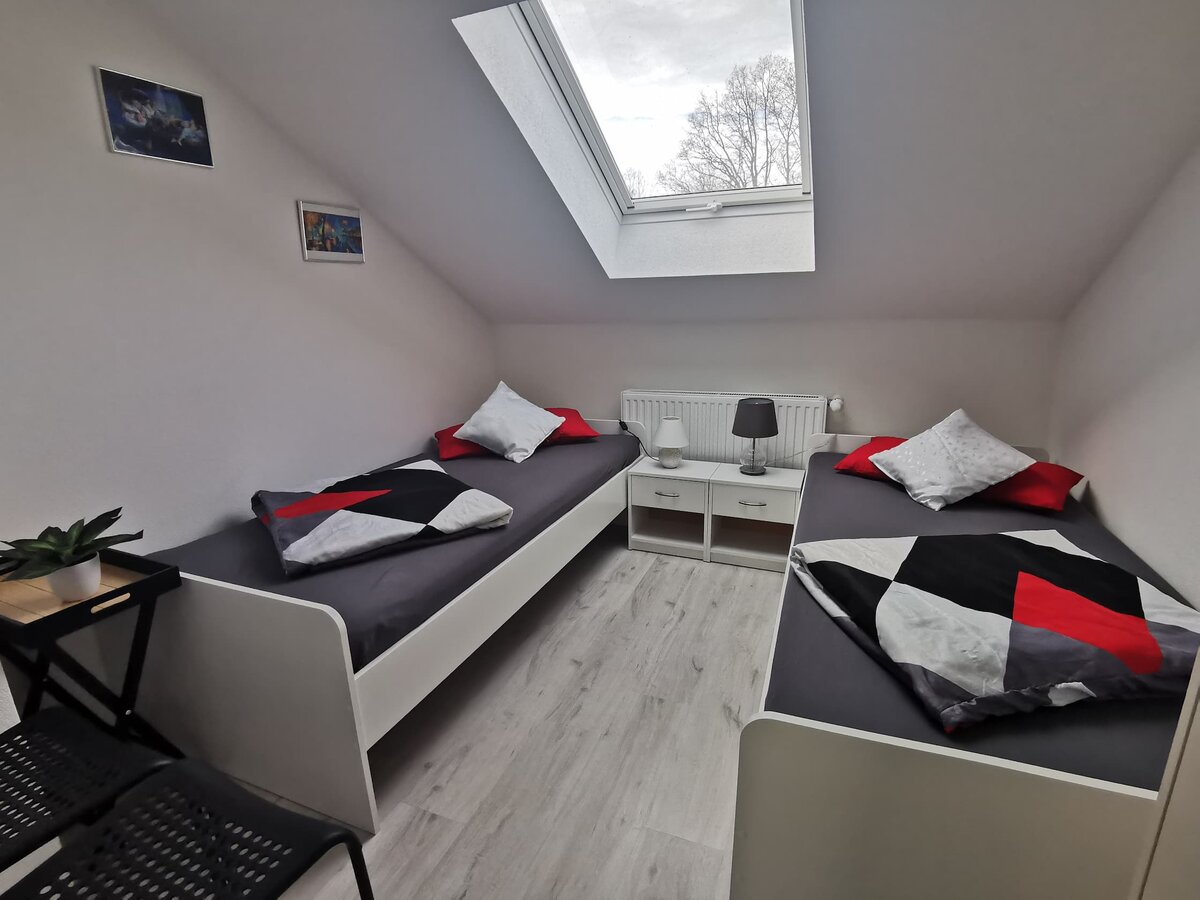 Es gibt zwei helle Schlafzimmer mit bequemen Einzel-/ Doppelbetten.